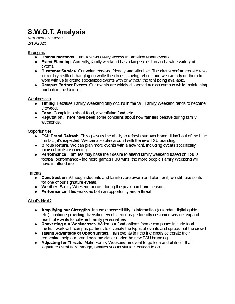 As a Marketing Intern, my task was to refresh FSU Family Weekend's branding to align with Florida State University's recent re-branding and better represent its values. This work is the foundation for the upcoming 2025 FSU Family Weekend.